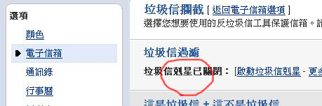 請點選 [關閉垃圾信剋星] ,先暫時關掉您的信箱攔截機制。