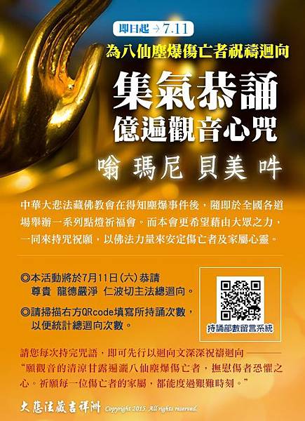 《為八仙塵爆傷亡者祝禱迴向─集氣恭誦億遍觀音心咒》